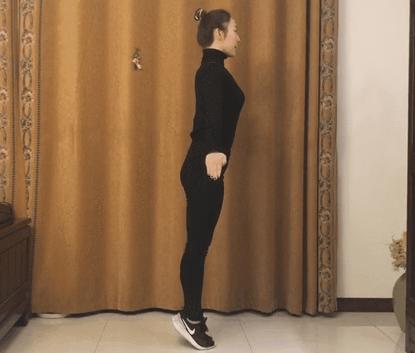注意要点:单腿弯曲后踢至臀部,依次交替