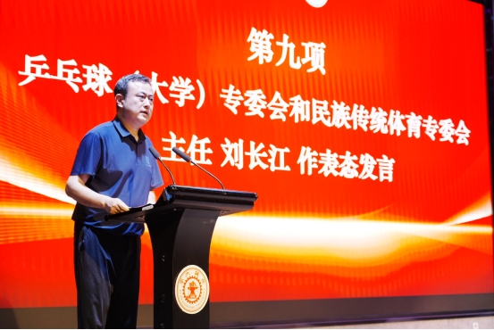 乒乓球(大学)专委会和民族传统体育专委会主任刘长江作表态发言。他衷心感谢大家的信任,郑重表示将:提高站位,服务大局,坚持正确的政治导向和工作方向;恪尽职守,团结协作,聚焦主责主业;锐意改革创新,提升服务学生全面发展的能力水平;全面落实协会工作要求,努力开创两个专委会工作新局面。
