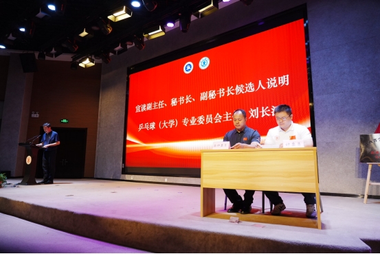 大会依次审议并表决通过了乒乓球(大学)专业委员会和民族传统体育专业委员会的副主任、秘书长、副秘书长建议人选名单(计票员:宋绍鹏,总计票员:陆佳)。随后,大会为两个专委会的顾问、主任现场颁发了聘书。