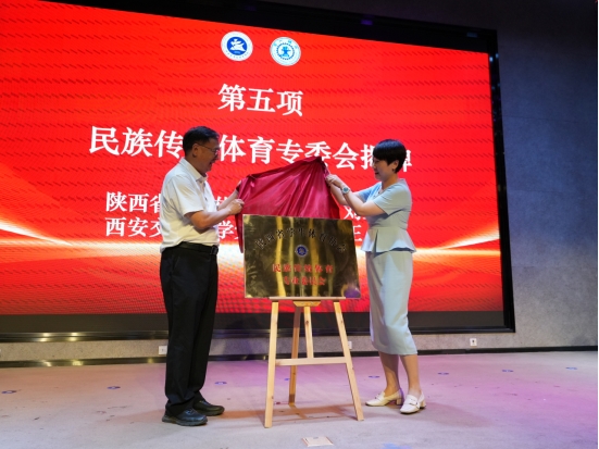 陕西省学生体育协会秘书长张原耕宣读了《关于同意召开乒乓球(大学)专委会换届大会暨民族传统体育专委会成立大会的批复》。在热烈的掌声中,刘宝平主席和王欢副书记共同为“陕西省学生体育协会民族传统体育专业委员会”揭牌,标志着该专委会正式启动运行。