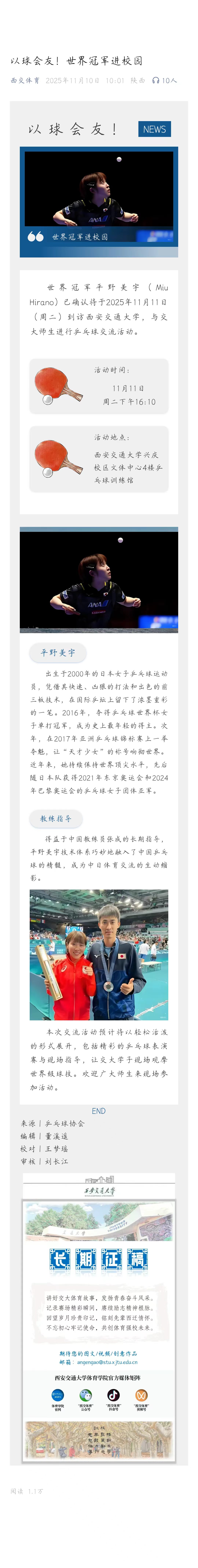 以球会友!世界冠军进校园