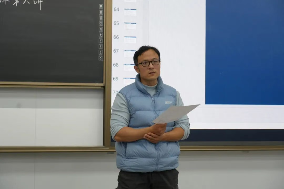 段继超在党课最后带领学子们重温了中国近代体育先驱刘长春在洛杉矶奥运会上“我中华健儿此次单刀赴会,万里关山此刻明。此刻国运艰难,愿诸君奋勇向前,愿来日我等后辈远离这般苦难”的豪言壮语,深刻阐释了强健体魄对于个人成长与民族发展的重要意义,勉励学子们将体育精神融入生活学习中,以奋斗之姿书写青春华章。