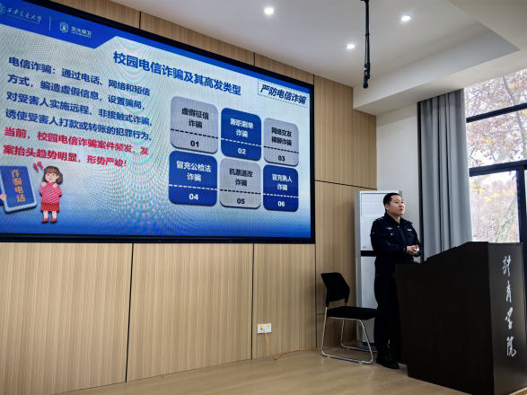 为进一步筑牢校园安全防线,提升安全防范意识,12月3日下午,体育学院师生联合党支部协同学生工作办公室,特邀保卫处安全教育与宣传办公室常帅老师为全体硕士研究生进行安全主题宣讲。